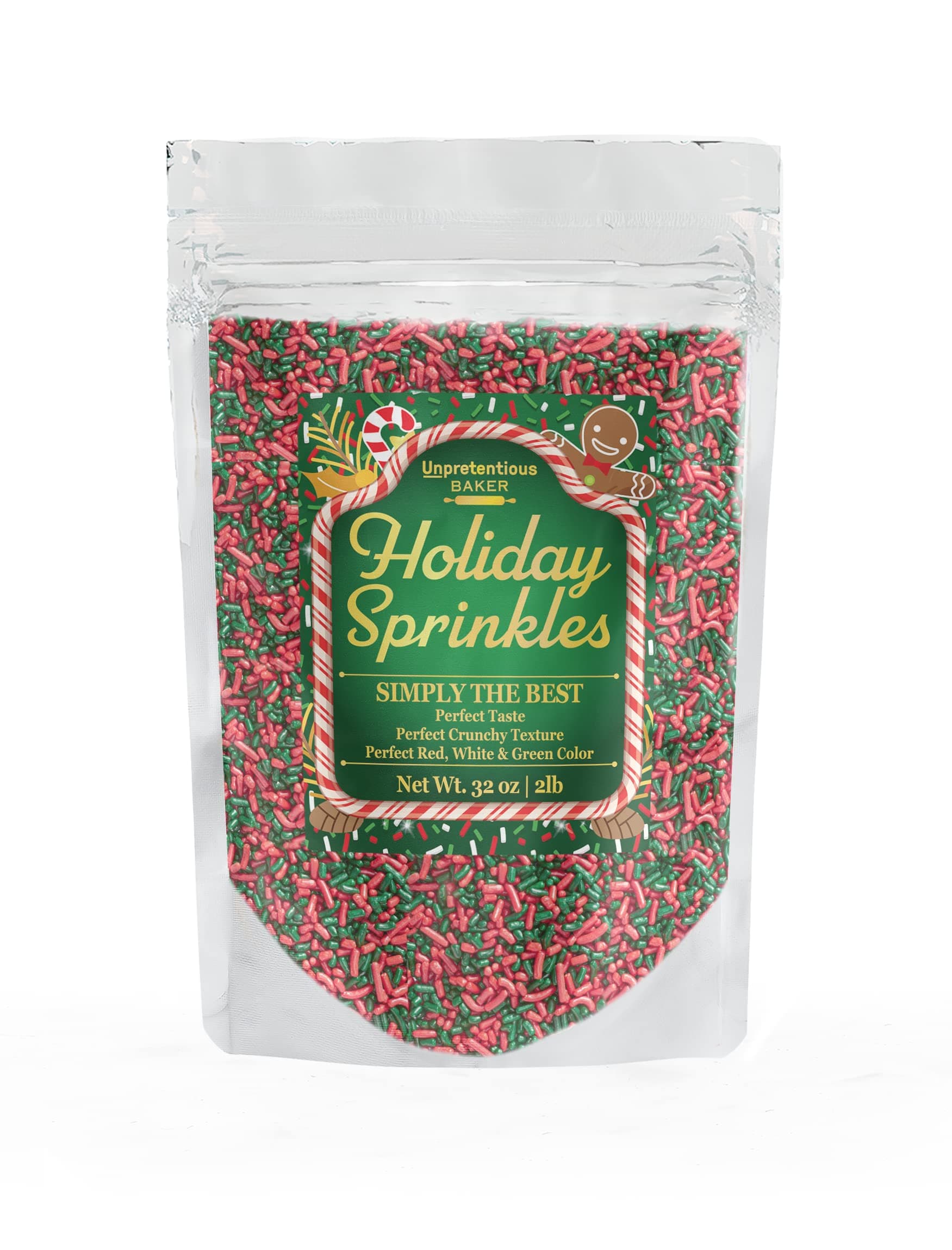 Unpretentious Holiday Sprinkles are a 2 lb bag of gluten-free red and green jimmies, perfect for adding a festive touch to your holiday baking. With a delightful hard candy crunch, these sprinkles are ideal for decorating cupcakes, cakes, and other treats, ensuring your celebrations are both delicious and visually stunning.