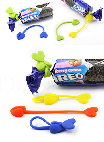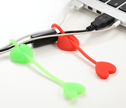 Colorful heart shape cable ties Material: silicone Color: red, blue, yellow, green, pink Pack of 10, 2pc for each color Length: 15.5cm Use for bundling multiple objects, organizing various cords, sealing plastic bags for chips and breads, and much more Good quality silicone material, reusable and durable, stretchable and flexible