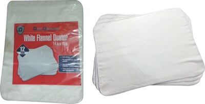 Description Dirt Defense Flannel duster, white Dirt Defense Flannel duster in white color is used has absorbent for liquid and dust or lint cleaning. Flannel duster measuring 14" x 18" is a heavy-duty wiper that can be machine washed. 14 inch x 18 inch 12 Dusters pack White Heavy-duty wipers Absorbent for Liquid and dust or Lint cleaning Machine washable Specifications Toilet Paper Pack Size : 1-10 Brand : Dirt Defender Customizable : No Weight : 1.00 lbs. per Each