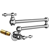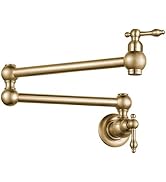 The AYIVG Pot Filler Faucet features a durable brass build with a stylish brushed gold finish, dual ceramic cartridge handles for drip-free control, and a 360° swivel dual jointed spout extending 22.7 inches for maximum reach. Designed for wall-mount installation with a single hole, it supports cold or hot water supply and includes adapters for US standard plumbing. Backed by a 5-year limited warranty, it’s a perfect blend of commercial-grade functionality and modern kitchen elegance.