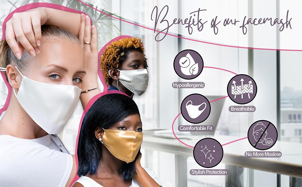 Celestial SilkPleated 22 Momme Silk Face Mask Reusable and Washable Mouth Cover with Adjustable Ear Loops