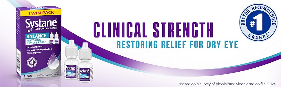 SystaneBalance Lubricant Eye Drops come in a convenient 2-pack of 20 ML bottles, offering a clinically balanced formula designed to restore and maintain natural eye moisture. Lightweight and portable, these drops provide lasting relief for dry eyes, making them an essential part of your daily eye care routine.