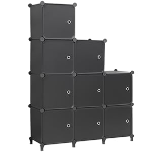 ANWBROADCube Storage Organizer with Doors 9-Cube DIY Modular Closet Cabinet Plastic Clothes Units Organizer Bookshelf for Bedroom Home Room Office 36.8"x12.4"x49.8" Black ULCS09BM