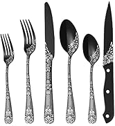 | Included Components | This mirror black flatware set comes with 8 dinner knives, 8 dinner forks, 8 dinner spoons, 8 salad forks, 8 teaspoons, 8 steak knives and 5 serving utensils |