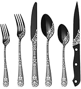 The EUIRIO 53-Piece Black Silverware Set combines modern aesthetics with practical design, featuring a full complement of utensils for 8 people, including 8 steak knives and 5 serving tools. Crafted from rust-resistant stainless steel with a unique floral laser engraving and a sleek black mirror finish, this set offers durability, sharpness, and dishwasher-safe convenience—perfect for professionals who want to impress at every meal.