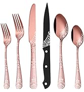 If you’re wanting to stand out with uniqueness, this would be a fun way to make your kitchen look more sophisticated. I saw this set at a friend’s house and fell so in love with it, I had to order it for myself! This was worth every penny! I love the floral design against the sleek slate black. I was impressed with how sharp the steak knives in the set are! I’ve had the set for quite some time now and they’re very scratch resistant and rust resistant. I believe I read on the care instructions not to put them in the dishwasher, so I always hand wash them.