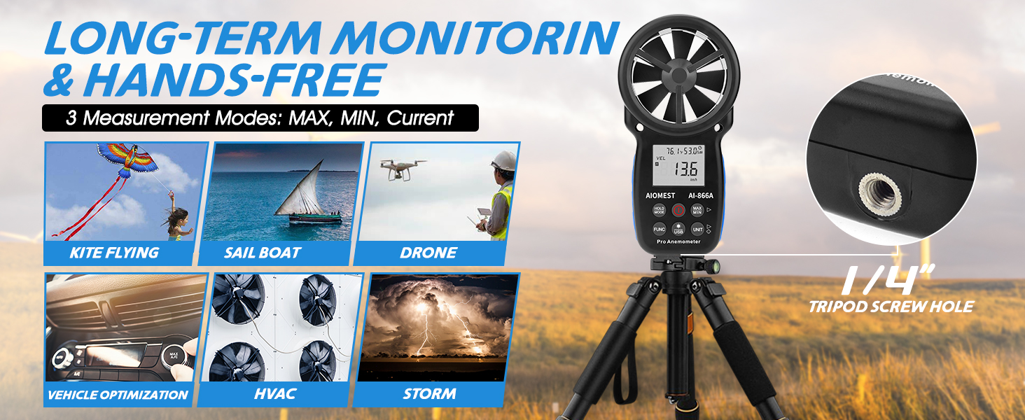 AIOMEST ANNMETER AN-866A Digital Anemometer, CFM Wind Speed Gauge, Air Flow Velocity Meter Measuring Wind Speed Temp Wind Chill Dew Point with Backlight