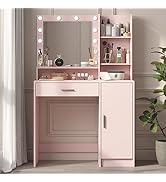 This Pink Vanity Desk features 12 adjustable LED lights with 3 color modes, a large drawer, and triple-level storage shelves crafted from durable engineered wood and metal. Designed for both function and style, it offers ample space to organize your makeup and skincare essentials while enhancing your bedroom’s aesthetic. Easy to assemble with detailed instructions, it’s a perfect blend of beauty and practicality for the modern professional.