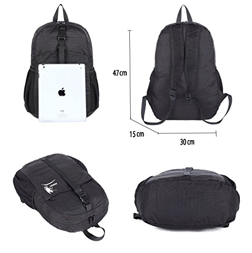 Ultra Lightweight Foldable Backpack Packable Daypack for Hiking Cycling Sports, Camping, Travelling and Other Outdoor Activities. MATERIAL: Made by water and tear resistant high-quality material, unique lightweight design, comfortable and super convenient to carry. Product Specification: DIMENSIONS: Unfold: 47*30*15cm Space Capacity: 30L Space-Saving Compact Size When not in use, the daypack can be stuffed into its own zippered inner pocket for easily stashing it just about anywhere. There’s no extra bag fee for bringing it along when traveling, and then it can be quickly unfolded from its pocket when ready to use at your final destination. Or pull it from luggage and use it as a carry-on bag for excess items to avoid overweight-baggage charges. Eyekitchen backpack is perfect for daily use or occasional travel, and serve as ideal gifts for everyone. Quality Guarantee: We follow up with every order to be certain that you are loving our product. We want our customers completely happy. Even if our product isn't a perfect match for them. We offer a 100% GUARANTEE. No gimmicks or special bonuses. Just a top quality product. If you have any question, feel free to contact us. Buy it without hesitation, and start to enjoy your happy & convenient life.