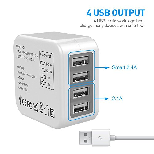 - 【Smart IC Technology】Built-in smart IC & thermal material can recognize any device including iPhone/iPad/Android phones/tablets/MP3/digital camera and prevent the wall charger from overheat & over-load, ensures safe charge on your devices