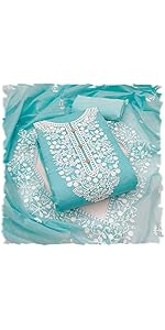 Sidhidata Women's Heavy Cotton Thread & Sequence Embroidery Salwar Suit Dress Material features premium cotton and santoon fabrics with multi-thread embroidery and a shimmering Chanderi sequence dupatta. With generous fabric lengths and a free size design, it offers customizable ethnic elegance perfect for daily wear, work, and special occasions.