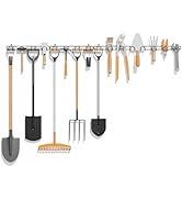 This heavy-duty, wall-mounted garden tool storage rack features 16 robust hooks across four customizable 16-inch sections, supporting up to 50kg. Crafted from powder-coated metal, it resists rust and deformation, making it ideal for garages, sheds, or workshops. Easy to install in under 15 minutes, it maximizes wall space to keep your garden tools neatly organized and within reach.