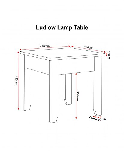 Assembled Sizes W X D X H(Mm): 490 X 490 X 490 Quantity Of Cartons: 1 Weight 6.9kg Product Materials Pine Top Mdf Extra Information Top Thickness 16mm Leg Thickness 60mm X 25mm Delivery only to Mainland UK & Northern Ireland by Home Essentials Inc 01536 618479