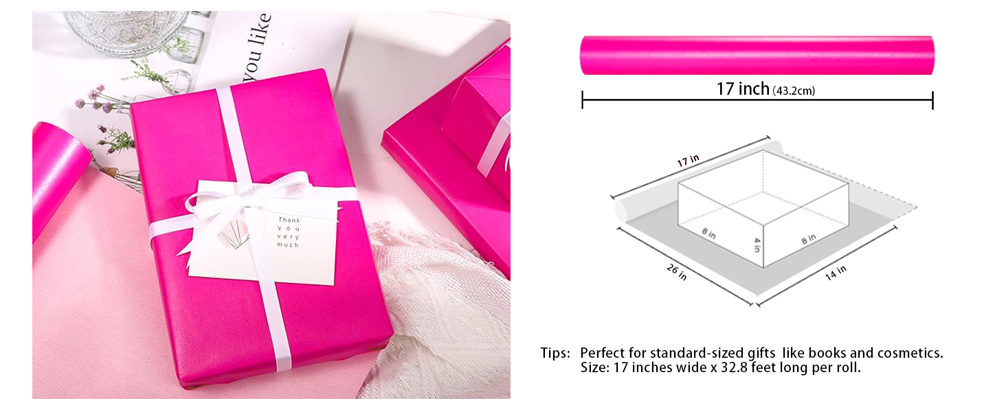 The WRAPAHOLIC Solid Color Premium Pearl Glossy Wrapping Paper offers a generous 17-inch by 32.8-foot roll of high-quality paper featuring a luxurious pearl glossy finish in a vibrant hot pink matte shade. Designed to deliver crease-free, elegant gift wrapping for weddings, birthdays, Valentine’s Day, and more, this versatile wrapping paper ensures your presents stand out with style and sophistication.