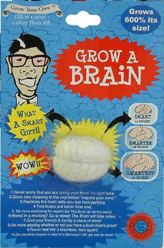 Grow a Brain Little brain grows to 600% its own size 1-Never worry that you are losing your mind-It's right here 2-Gives new meaning to the expression "Expand your Mind" 3-Replaces the brain cells you lost from partying 4-Two brains are better than one 5-No more cramming for exams (Let the Brain do all the work) 6-Bored in a meeting? Go to sleep! The Brain will take notes! 7-Give your friends & family a piece of mind! 8-No more arguing whether or not you have a brain - here's proof! 9-Never feel like a brainless, idiot again! 10-Do you know anyone in need of a lobotomy? I do , get one for them !!!!