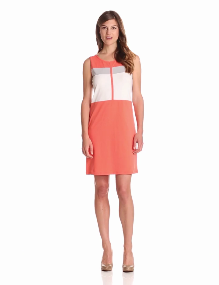Evolution by Cyrus Women's Sleeveless Crew Neck Color Block Shift Dress, Tropical Punch Combo, Medium