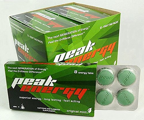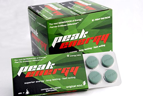 FEEL THE D-RIBOSE DIFFERENCE! Clinical studies show that D-Ribose significantly improves endurance during strenuous exercise, shortens recovery time, and reduces fatigue in people suffering from energy depletion. Whether you just ran a 5k or have been awake for 18 hours, your cellular energy levels are in a depleted state leaving you feeling tired and flat. The caffeine in Peak Energy mints increases alertness and decreases fatigue, while the patented D-Ribose in Peak Energy mints replenishes your cellular energy leaving you feeling rejuvenated and refreshed. The stamina boosting energy from this unique combination is better than an energy shot or drink. It also acts quicker, and is backed by clinical studies that show that it lasts longer and has no crash. Peak Energy is designed for fitness enthusiasts and everyday energy users who want to maximize their performance and operate at their peak throughout the day! Reach for the Peak!