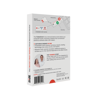 Description The FixMeStick is a computer virus removal device. It is an external, hardware based product that runs before Windows® starts enabling it to remove viruses that software anti-virus programs often cannot. FIXMESTICK Unlimited PCs Virus Removal Device has more than 3 virus scanners based on detection & removal of viruses with automatic updates and download ability compatible for any PC. It runs directly from a USB port.What makes the FixMeStick virus removal device different from anti-virus programs?Your Windows operating system, your programs, and all your content are stored in files. When your PC is on, these files work togetherlike a complex set of gears to deliver your PC experience. If one of these files becomes infected, it compromises your system so that it often cannot be cleaned by anti-virus program files. When your PC is off, your files are off too. They are just bytes on your hard drive: dormant, and unable to take any action. The FixMeStick® virus removal device runs while your files are in this off state. As a result this hardware device can often remove infections that anti-virus programs cannot.How does the FixMeStick virus removal device remove infections that anti-virus programs often cannot?Anti-virus programs are software tools that run while your Windows operating system is running to protect Windows from malicious software like viruses, trojans, spyware, and malware. Protection from these malicious threats is important and running anti-virus protection is highly recommended.The FixMeStick virus removal device is a hardware tool that runs before Windows to remove malicious software that got past your anti-virus protection. Once malicious software gets into Windows, it  can be impossible to remove while Windows is running. Independent security experts and government security agencies recommend cleaning an infected PC with a hardware tool like the FixMeStick virus removal device that runs before Windows starts. Remove the viruses and malware that other security programs cannot No software to install so it cannot conflict with your antivirus or any other programs Updates are automatically downloaded and stored on the FixMeStick Complete system on a stick that plugs into any USB slot Type: Antivirus Compatibility: Windows XP, Windows Vista, Windows 7 & Windows 8 Dimension: 8"H x 5"W x 0.8"D 1 year unlimited on up to 3 PCs Product Details:  Hardware-based removal of viruses that cannot be removed by antivirus programs·  Simply insert a FixMeStick into your PC's USB port, reboot, and let it run. When it's done, you pull it out.Runs from a USB device and doesn't install software to your PC so won't slow down your computer or interfere with your work and play.Not a replacement for antivirus software which protects PCs from infections, the FixMeStick is for removing infections that got past the antivirus.Works an unlimited number of times on up to 3 different PCs for one year from the date of first use. Specifications Operating System : Windows Computer Software Format : Download Security Software Type : Antivirus and Security Number of Licenses : 3 Number of Users or Clients per License : 10 Brand : FIXMESTICK Customizable : No Weight : 0.15 lbs. per Each