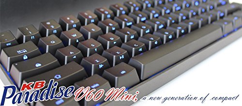 The KB Paradise V60 Mini, the next generation of compact mechanical keyboards. Featuring dual LED backlighting so you can switch up your LED colours for variety, dip-switches to customise your layout with a generous bundle of key caps to cater to your preferred layout. The V60 Mini comes with a detachable keyboard. What more could you ask for from a compact mechanical? Main Specification: - Tiny size keyboard with 61 keys - Cherry MX Switches - Firmware upgradable over USB - NKRO (N-Key rollover) - 6 port dip switches - Laser engraved keycaps - Dual led backlit function Package content: - Keyboard - Replacement keycap - Cable - Keypuller Compatible with: - Windows XP - Windows Vista / Seven / 8 - MAC OS X