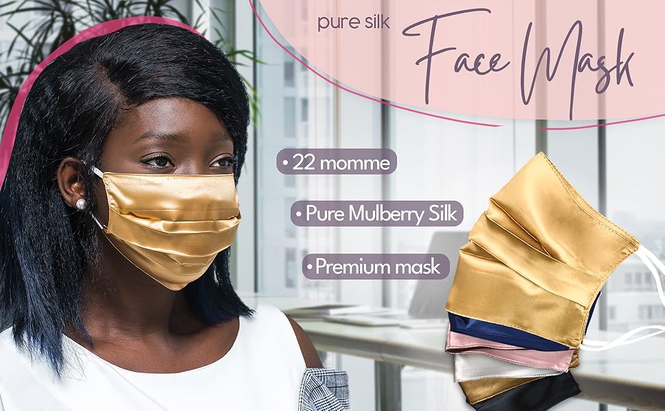 Celestial SilkPleated 22 Momme Silk Face Mask Reusable and Washable Mouth Cover with Adjustable Ear Loops