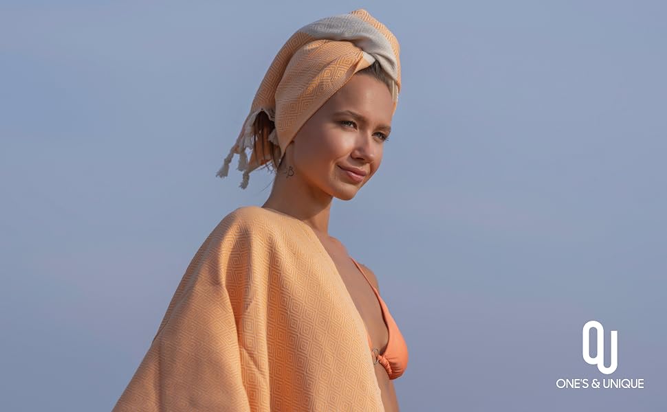 The One's & Unique Beach Towel Set includes two premium organic cotton towels (XL: 100x180 cm, S: 50x100 cm) designed for quick drying and superior softness. Weighing only 1.27 pounds, these lightweight, compact towels are perfect for beach outings, yoga sessions, or as a stylish home accessory. With 60% thicker fabric and zero allergens, they provide exceptional comfort and care for your skin and hair.