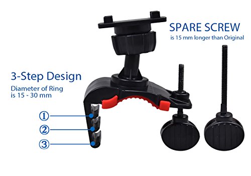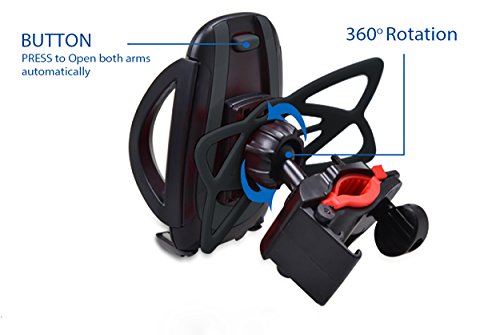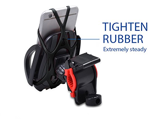 The new generation of phone holder securely mount your phone GPS or other devices to your motorcycle, bicycle, baby carriage or treadmill with a tight grip. Spare screw design easily adjusts based on different diameter of ring Tighten rubber is easy to install and extremely steady than other phone holder in the market.