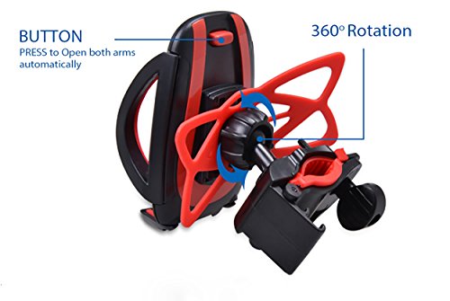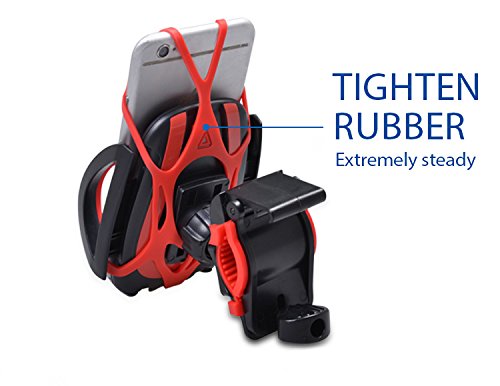The new generation of phone holder securely mount your phone GPS or other devices to your motorcycle, bicycle, baby carriage or treadmill with a tight grip. Spare screw design easily adjusts based on different diameter of ring Tighten rubber is easy to install and extremely steady than other phone holder in the market.