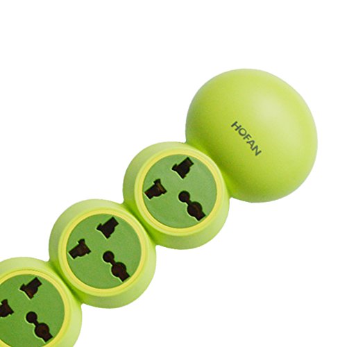 Unique Design: The latest design of Carpenterworm shape,it can identify equipment type automatically and adjust to best charging current. UNIVERSAL POWER SUPPLY: 3 standard AC Outlets Power Strip with Surge Protection - Prefect for your home and office electrical appliances, computers, laptops, printers, modems, speakers and more Children Safety Protection: Each outlet with an individual exit plate that can ensure the safety of children Children Safety Protection: Each outlet with an individual exit plate that can ensure the safety of children. Specification: * Color: Green, Pink * Max Power: 2500W * Rated Voltage: 110-250V * Rated Current: 10A * Outlet Quantity: 3 AC plugs * Material: Fire-resistance PC shell, PVC copper wire * Cord Length: 1.5m white cable * Feature: Overload protection, Surge protection, Home power center * Surge Protector with charging station. * AC socket Apply: US Plug surge power cord connection Package Include: * 3 AC Outlet Power Strip