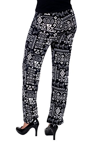 Women's harem pants by Mesmera feature a sheer lightweight material, bold prints and colors, a 3" wide smooth elastic banded waistline and elastic gathered leg cuffs. 95% Polyester, 5% Spandex. Machine wash cold gentle cycle, line dry.