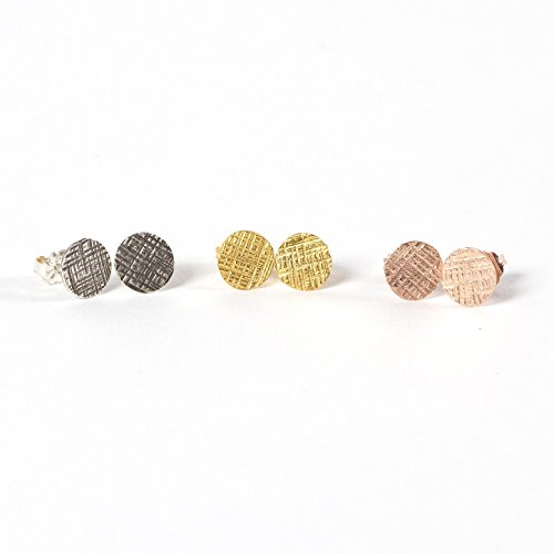 These petite sterling silver stud earrings have a simple cross hatched line texture from my hammer. They are nice and light so they are very comfortable to wear all the time. They are about 5/16 of an inch. The earrings are made with recycled sterling silver. This listing is only for 1 pair of earrings, the other photos just show similar options for scale and details. All items are shipped in gift boxes through USPS.
