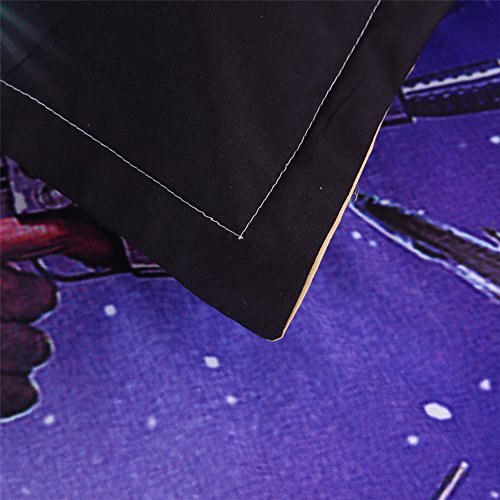 "Specification: Fabric: 100% cotton Bed Size: 1.8-2.0M Pattern: Vivid 3D Pattern Weaving process: plain, sanding Bedding process: quilting Printing craft: reactive dyeing Fabric yarn count: 300 Laundering instructions: 1. The washing maximum temperature 30 2. Ironing maximum temperature 110 Washing Cares: 1. in order to prevent the dyeing, please avoid washing with other dark fabric 2. choose neutral detergent, soaking time shall not exceed 30 minutes 3. washing machine program please select soft washing 4. avoid exposure, please choose dry in the shade 5. avoid rough or acidic, alkaline substances 6. should be washed ironing, dry, fold before the collection 7. store in dry place, avoid to be affected with damp and be affected with damp mildewy 8. place a mat when ironing, to avoid the aurora 9. details please refer to product care label Package Included: 1 x Duvet cover 1 x Flat sheet 2 x Pillowcases Notice: 1.Due to different standard of queen size of the bed sets between different countries. The real size, please refer to our specification above, according to your own bed to measure. The size of our bed set generally fit to 1.8-2.0m width of bed. 2.Please allow 1-3cm error due to manual measurement, please make sure you do not mind before you bid. 3.The colors may have different as the difference display, please understand. "