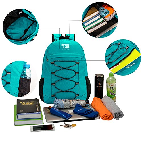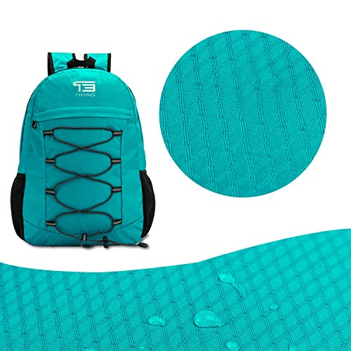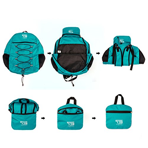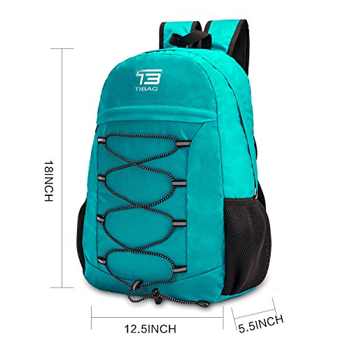 About TIBAG Lightweight Backpack Packable Backpack Travel packable DaypackWith a stylish look, this packable go-anywhere pack is for super-minimalists who make every gram count. Ultra-light. Ultra-durable. Ultra-awesome. The backpack is perfect for day-to-day use or occasional travel. Adjustable breathable straps make it easy and comfortable to carry for all day use.COMPACT.Folds into zippered inner pocket to fit anywhere. Unfolds from pocket to backpack. Must have on every trip.MULTI COMPARTMENTS. Features a classic shape with several pockets for storage and organization. This backpack has a roomy main compartment, one front zipper pockets to hold small accessories, one internal security zippered pocket for valuable items and two side pockets for water bottle or umbrella.The outer rubber net can put some accessories.LIGHTWEIGHT(0.48 Pounds/0.5 Pounds) and ROOMY(25Liters).A true space saver. Stuff the bag into its own pocket for storage---no extra fees, and unzip it when you reach your destination. Avoid overweight charges, simply unfold from your luggage and use it as a carry on for your excess baggage. DURABLE.The backpack is made from highly rip and water resistant nylon fabric, provide strengthen and long-lasting performance with minimal weight. Durable 2-way Abrasion Resistant YKK Metal Zipper across the backpack.Dimensions:25L: Unfold: 18x12.5x5.5 inches, Fold: 7.5x7x1.5 inches Warranty: Our Promise-Lifetime Warranty-Exchange, return, whatever it takes.Ultra-light. Ultra-durable. Ultra-awesome. The backpack is perfect for day-to-day use or occasional travel, and great gift for everyone.