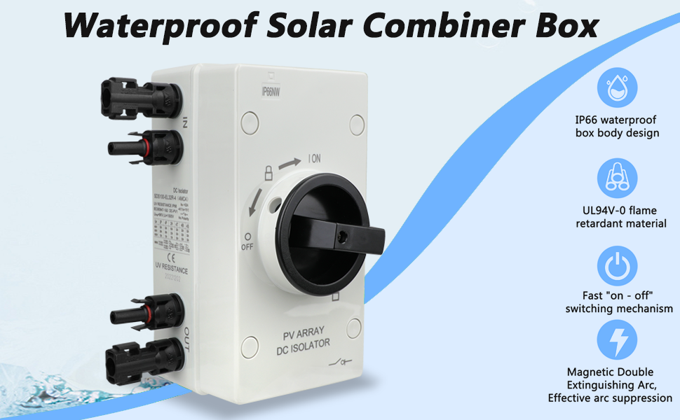 The 64A Solar Disconnect Switch by Aowoil is a robust, dual-loop DC isolator designed for solar power systems up to 1000V. Featuring IP66 waterproof and dustproof protection, rapid magnetic arc suppression under 5ms, and a tamper-proof rotary switch, it ensures safe, reliable disconnection for residential, RV, and marine solar setups. Easy to install with included MC4 connectors and wall mount kit, it’s engineered for durability across extreme temperatures and backed by a 2-year warranty.
