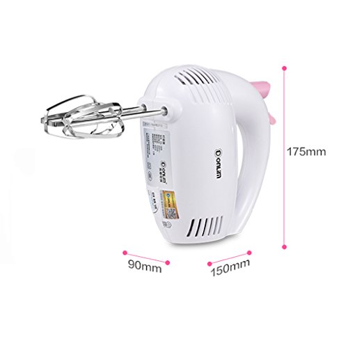 Name: whiskMaterial: stainless steel, plasticPlacement: HandheldSize: 90 * 150 * 175mmPower: 120wRated voltage: 220vFunction: beat the egg to play creamStalls: 5 stallsFeatures: high-quality materials, intelligent bar back function, fast cooling, five gear adjustment for speed