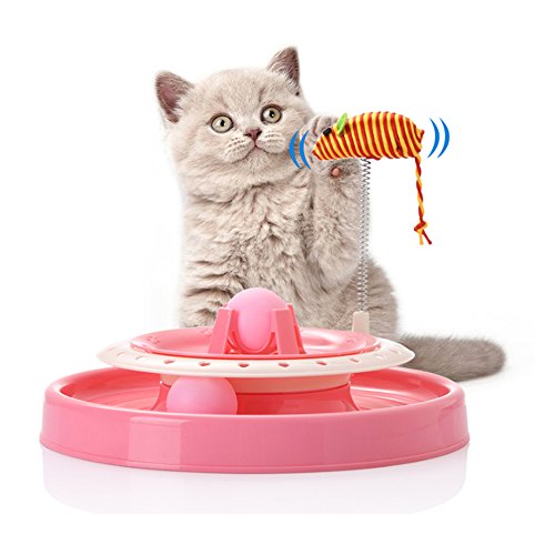 Crazy cat swim disc:diameter 8.1 inch Interactive toy to decrease boredom Entertain your cat and protect your furniture from scratching The top spring mouse shakes and stimulates the cat to play At the top of the grid, the ball will rotate as cat touch