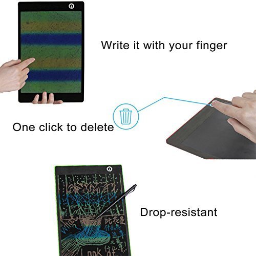 9.7 "LCD LCD panel colour writing table with paperless LCD writing tablet office drawing Function: 1. Easy to write and draw, one key for cleaning all. 2.Sensitive devices: Drawing or Writing with a stylus or other comparable instrument or even your nail. 3. It is very thin and light, making it very easy to store, easy to transport and easy to use. 4. Rechargeable batteries, long battery life up to 3 years Watch batteries, which allow you to worry about replacing the battery. 5. Reflective Display for protect your eyes. 6. Made from durable, non toxic plastic antidéflagrants. 7. Size: about 235 * 155 * 5.5 mm. 8.Wight: about 110g. 9. Writing Pressure: 5-200g Contents of packaging: 1x LCD writing tablet 1 x Writing Pen