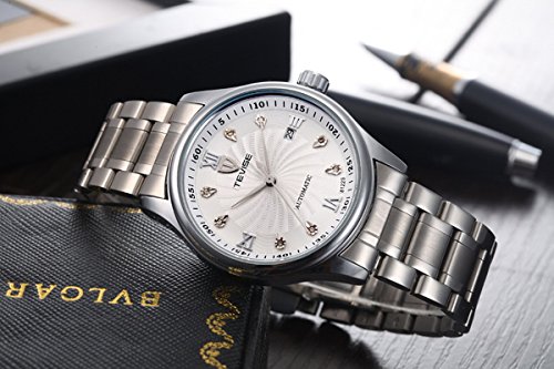 Feature:Dial Window Material:Glass; Case Material:Stainless Steel; Band Material:Stainless Steel.Function:The calendar; Luminous hands.Not suggesting wearing the mechanical wristwatch for long time exercise,such as golf or baseball,tennis,which may destroy the wristwatch caliber.You should clockwise rotation wind up 20-30 laps after receipt of the table, because watches transportation in the process of walking is still a lack of motivation leads to the watch is not normal, it ensure the normal order of the watch as the operation.Dial Diameter: Approx 40mm/1.57"; Dial Thickness: Approx 13mm/0.51"; Watch Strap Width: Approx 20mm/0.79".Package Includes:1*Watch.