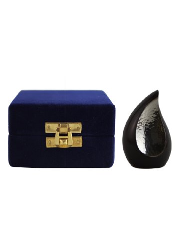 The urn is a wonderful way to enshrine the ashes of your loved one. Symbolically shaped like a teardrop, it speaks volumes about your attachment, love and memories to your special one. Made out of brass, which is the traditional material used.The sparkle finish on the black body makes it look beautiful as well as classy. It is one of the most wonderful ways to show your love to the soul .One can use it to enshrine the ashes of a dear one, partially after the majority is buried or scattered. It is like keeping the person close to you even after the death.The keepsake is designed with much love and reverence so that it is just as beautiful as the memories you are holding inside it. You can keep it anywhere in the house so that everyone can remember the person with love. The sparkle finish symbolizes the joy that the person has bought to your life. It also symbolizes the sparkle of the soul of loved one.The urn is simply not a keepsake; it is also a work of art. We provide 100% customer satisfaction and deliver the urn to your door step. We also assure refund for any unused urns.Dimensions: Height 3" inchesWeight: 0.47 kg (Approx.)Volume: Up to 4 Cubic Inches( Approx. 4 teaspoons)Cleaning Instructions: Light dusting is enough to keep the product clean and do not use any liquids or chemicals for cleaning.Capacity: A token amount of cremains not for full ashesFree Velvet box comes in Blue ColorHandmade items are rarely less accurate with colour span and edges. Handmade items are unique, artistic and available in exclusive designs.