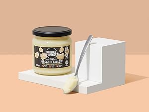 Hunter & Gather Organic Beef Tallow is a 450g jar of 100% grass-fed, organic beef fat from British cattle, free from additives, gluten, and seed oils. Perfect for high-heat cooking, it delivers rich nutrients including vitamins A, D, E, and K, supporting keto, paleo, and low-carb diets. Sustainably sourced with regenerative farming, this single-ingredient tallow offers a clean, natural cooking fat that enhances flavor and nutrition.