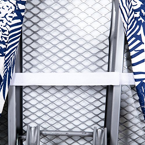 - ADJUSTABLE ELASTIC AROUND & VELCRO STRAPS: Easy to install and well locked with toggle and metal Â"SÂ" ring, no worry to the slipping and leaving edges exposed. A secure and no-slip fit for your ironing board