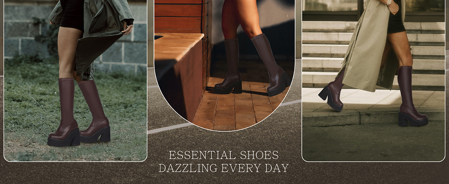 Aminugalwomens Elastic Knee High Boots Platform Chunky Block High Heel | Desertcart EGYPT