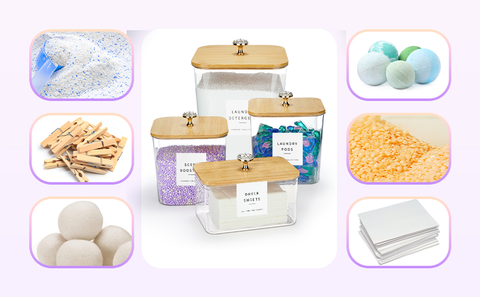 - DURABLE STYLISH - Shatter-resistant acrylic paired with sleek bamboo lids for a modern, professional look that fits any laundry room.