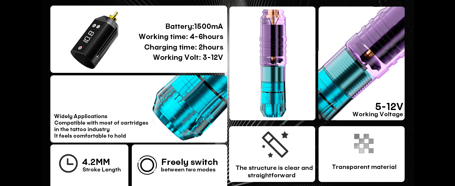- PRECISION MEETS COMFORT - Ergonomically designed aluminum alloy tattoo pen ensures a secure grip and smooth operation, compatible with all cartridge needles for flawless artistry.